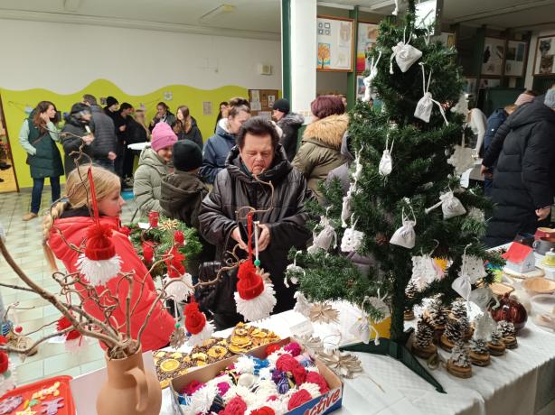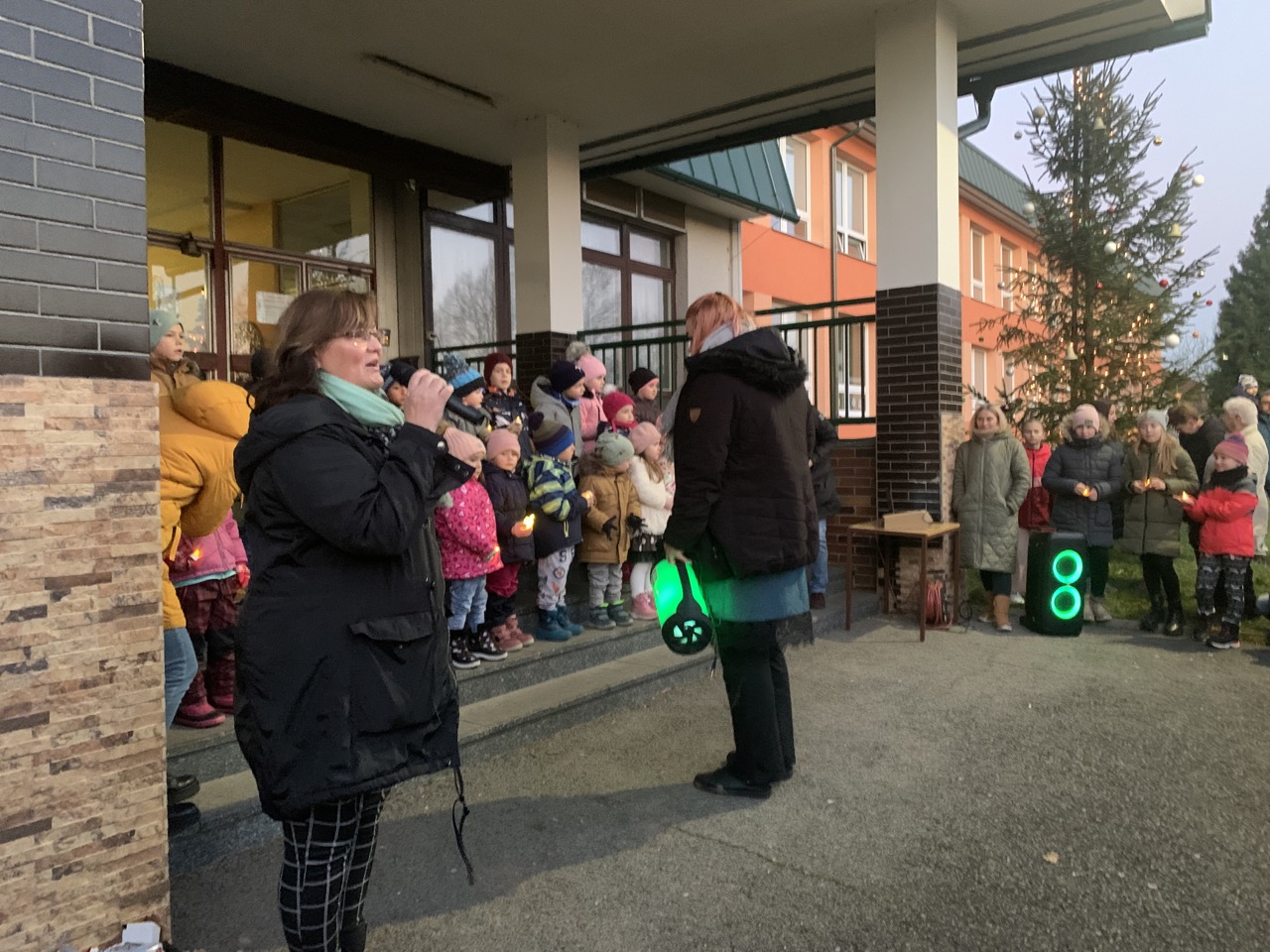 Před první adventní nedělí jsme se tradičně sešli ke společnému zpívání koled na schodech před školou. Účastnili se žáci MŠ i ZŠ, po vystoupení se hosté přesunuli do vestibulu školy, kde bylo možné zakoupit vánoční výrobky žáků.