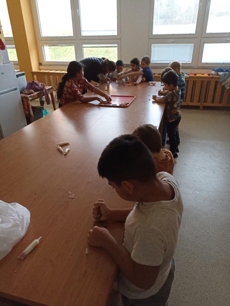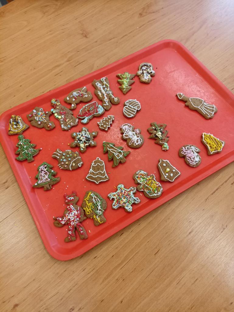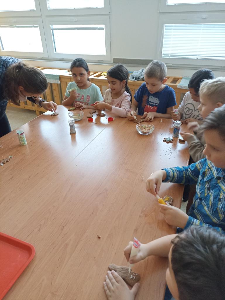 Žáci 1. ročníku si na hodině pracovních činností společně upekli a také ozdobili vánoční perníčkové cukroví.