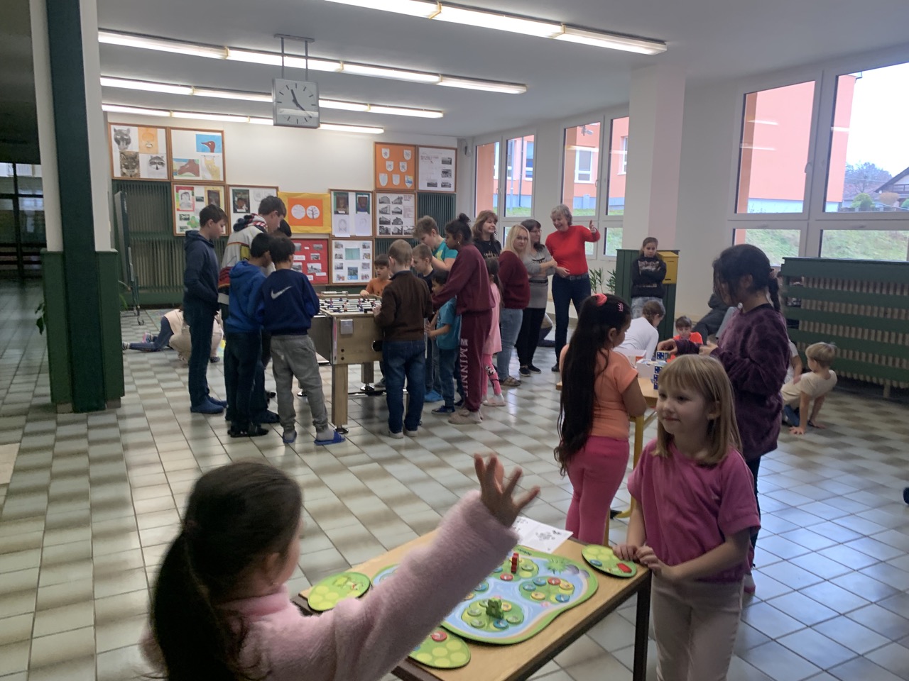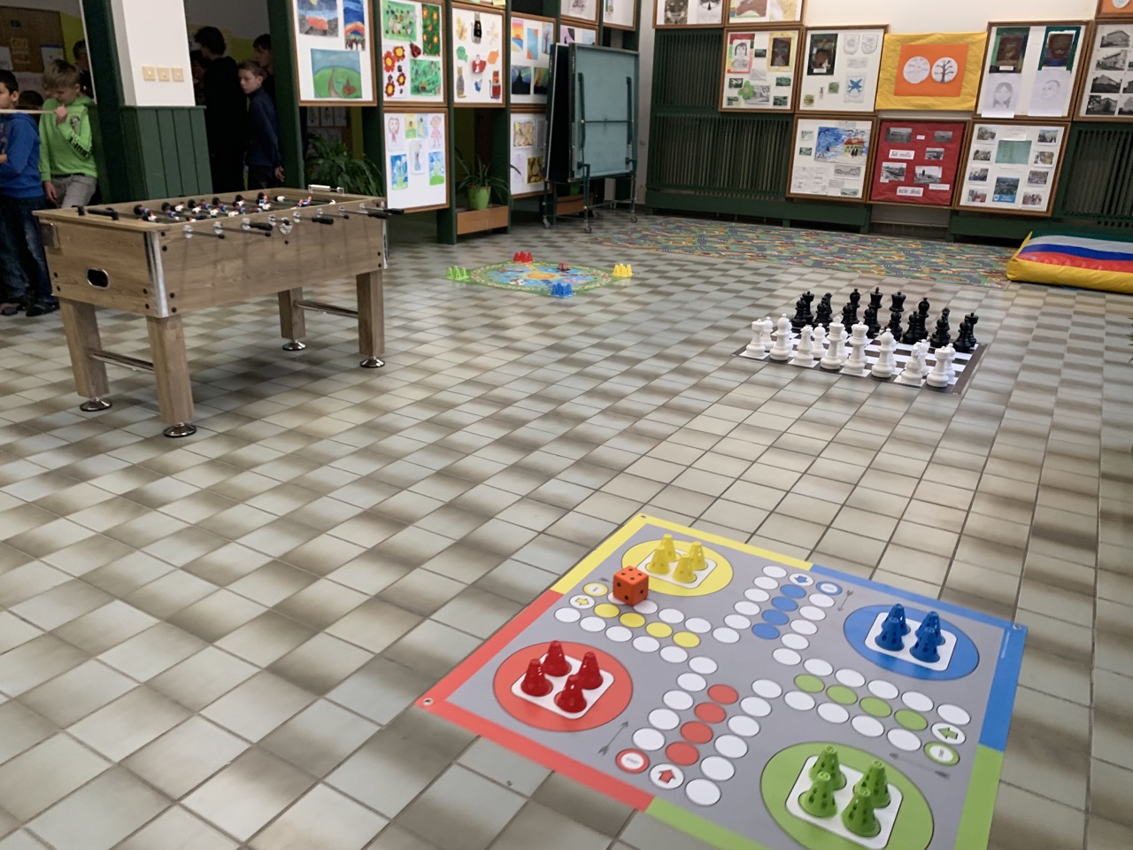 Ve čtvrtek 19. prosince jsme se sešli ve vestibulu školy, abychom společně odhalili jedno velké překvapení - škola žákům k Vánocům nadělila hned několik herních prvků. Poté, co zástupci všech tříd slavnostně přestřihli pásku dělící je od nově vzniklého hřiště, se všichni žáci jali hry vyzkoušet.