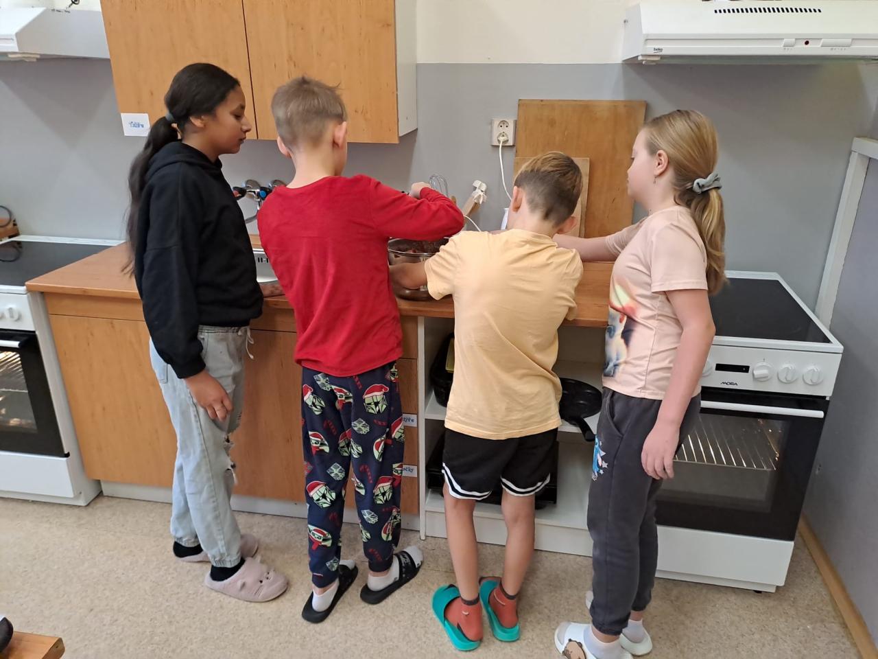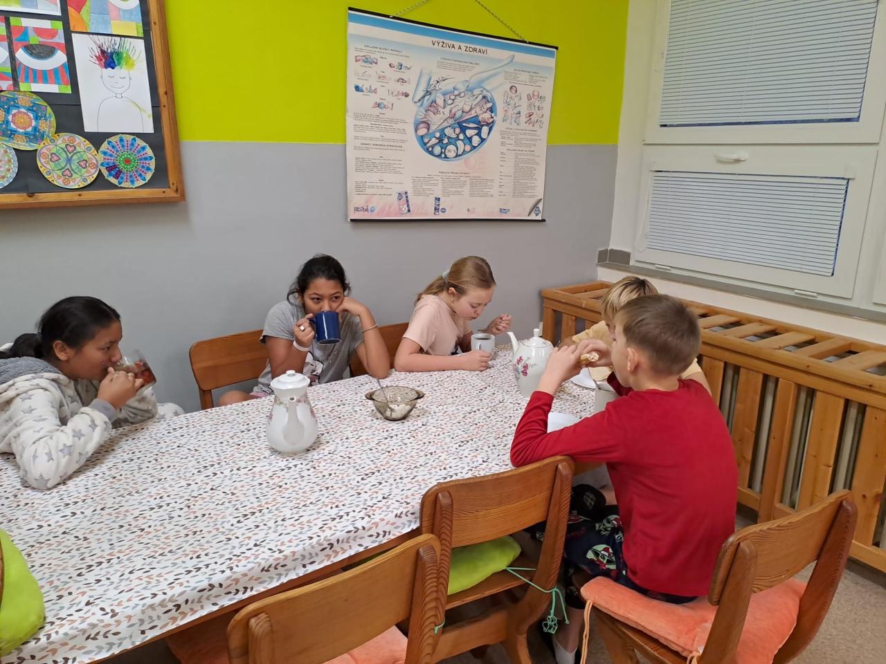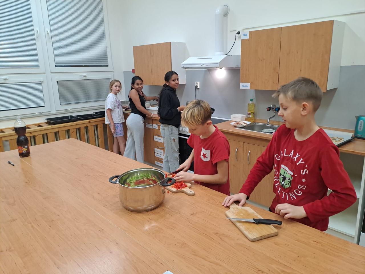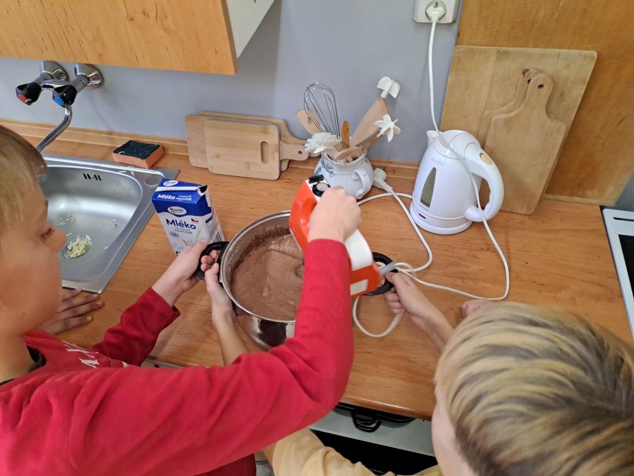 Žáci si nejprve sami naplánovali večeři, snídani a sladké pečení na sobotu. Zvítězil těstovinový salát, k snídani tousty, pekly se čokoládové muffiny a jablečný štrůdl. Připravili jsme podrobný nákupní seznam, poté společně odjeli do Tachova, kde si žáci opět již bez pomoci nakoupili suroviny. Po přípravě chutného těstovinového salátu přišla na řadu velká detektivní hra. Najít požírače slizu nebylo jen tak a jen velmi pozorné čtení pomohlo jednomu týmu pachatele odhalit. Pak již následovalo usínání při pohádkovém příběhu. V sobotu po společné snídaní přišlo na řadu pečení a zbyl čas i na společnou hru na závěr. Celá akce byla dotována z projektu OP JAK.